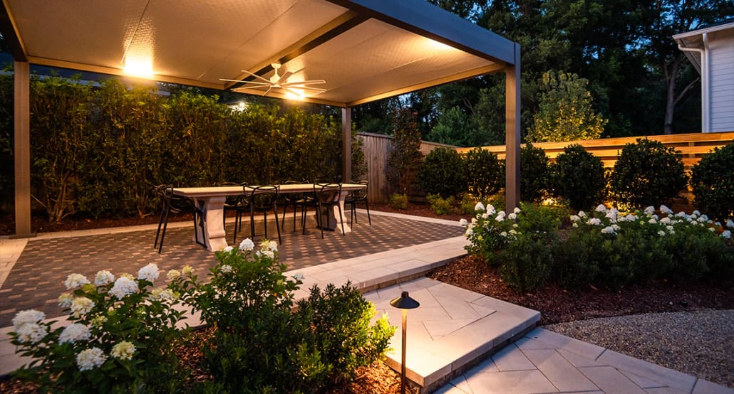 Tucked between two neighboring properties owned by the same family, this Auburn outdoor living space was designed to bring people together—whether for grand celebrations or quiet moments with loved ones. It’s luxe without being loud, personal without being precious, and timeless with a distinctly modern edge.